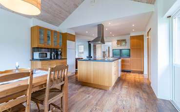 Die Wohnfläche des Ferienhauses beträgt ca. 80 m² und bietet Platz für bis zu 5 Personen. Über die große Terrasse gelangst du in das Haus. Nach dem Betreten des Hauses befindest du dich in einem kleinen Flur mit Garderobe. Direkt zur rechten Seite liegt das Badezimmer mit WC, Dusche und einer Waschmaschine. Weiter in das Haus hinein begibst du dich in die große und offene Küche mit Kochinsel und Essbereich. Die Küche ist gut ausgesattet und verfügt unter anderem über eine Spülmaschine. Das Wohnzimmer liegt dreikt seitlich der Küche und ist durch einen offenen Durchgang quasi mit der Küche verbunden. Im Wohnzimmer gibt es eine gemütliche Ledercouch und zwei Ledersessel, sowie ein TV und Glasfaser-Internet. Der Kamin spendet Wärme für das ganze Haus. Es gibt insgesamt zwei Schlafzimmer. Das erste Schlafzimmer, eingerichtet mit einem Doppelbett, erreichst du über den Küchenbereich. Das zweite Schlafzimmer mit einem Einzelbett und einem Etagenbett erreichst du über das Wohnzimmer. Das gesamte Haus verfügt über eine Fußbodenheizung!