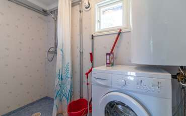 Die Wohnfläche des Ferienhauses beträgt ca. 50 qm und ist für maximal 4 Personen geeignet. Wenn du das Ferienhaus betrittst, befindest du dich in einem großen und langgezogenen Raum, bestehend aus der Küche, einem Essbereich und einem Wohnbereich. Die Küche liegt rechts und bietet alle üblichen Küchenuntensilien, unter anderem ein 4-Platten-Induktionskochfeld. Seitlich der Küche gibt es zwei Badezimmer. Das erste Badezimmer ist mit einer Dusche und einer Waschmaschine ausgestattet, das zweite Badezimmer besteht nur aus einem WC. Der Essbereich mit einem Esstisch, einer Sitzbank und Stühlen befindet sich zwischen der Küche und dem Wohnbereich. Der Wohnbereich verfügt über ein gemütliches Sofa, einem Sessel und einem TV mit schwedischen Programmen. In das erste Schlafzimmer, ausgestattet mit einem Doppelbett, gelangst du direkt über den Wohnbereich. Das Schlafloft mit zwei Einzelbetten erreichst du über eine Treppe, die sich Wohnbereich befindet. Vor dem Ferienhaus findest du Gartenmöbel und einen Grill.