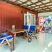 Die Wohnfläche des Ferienhauses beträgt ca. 75 m² und bietet Platz für maximal 4 Personen. Optimal für kleine Familien. Nach dem Betreten des Hauses befindest du dich in einem offenen Flur mit Garderobe. Direkt zur rechten Seite liegt das erste Schlafzimmer, eingerichtet mit einem Etagenbett. Aus dem Flur heraus gelangst du in den offenen Wohnbereich mit Sofas und einem TV. Links vom Wohnbereich findest du die offene Küche mit Essbereich. Die Küche ist gut ausgestattet und verfügt unter anderem über eine Spülmaschine und ein 4-Platten Cerankochfeld mit Backofen. Vom Wohnbereich aus hast du auch Zugang zur vorderen Terrasse mit direkten Blick auf das Wasser. Ebenfalls vom Wohnbereich aus erreichst du das zweite Schlafzimmer mit einem Doppelbett, sowie das Badezimmer. Das Badezimmer ist mit einem WC, einer Dusche und einer Waschmaschine ausgestattet. Über den hinteren Flur geht es dann raus in den vollverglasten Wintergarten und zur Außenterrasse mit Hollywoodschaukel. Die Terrasse führt seitlich am Haus vorbei, sodass du bis zur vorderen Terrasse laufen kannst.
