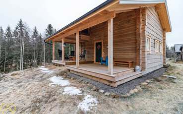 Vor dem Ferienhaus gibt es eine überdachte Terrasse mit Blick auf den See. Dazu befindet sich auf, bzw. über der Terrasse, ein kleines Spiel-Loft für Kinder (ca. 5 m²). Das Loft ist wie eine kleine Höhle und verfügt über Fensteröffnungen zum See, als auch zum Wald.
