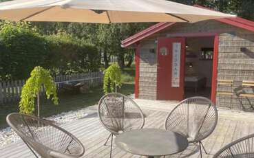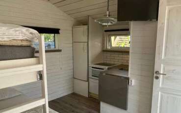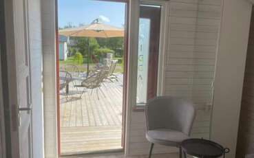 Die Wohnfläche des Ferienhauses beträgt ca. 80 m² und bietet Platz für bis zu 4 Personen. Das Ferienhaus betrittst du über eine kleine Terrasse vor dem Eingang. Du befindest dich in einem kleinen Flur, rechts liegt direkt das erste Schlafzimmer mit einem Etagenbett und vor dir liegt das Badezimmer mit WC, Dusche, Waschmaschine und Wäschetrockner. Das Badezimmer hat einen eigenen Zugang zur Terrasse mit Jacuzzi. Zur linken Seite geht es direkt in den offenen Wohn- und Küchenbereich. Die gut ausgestattete Küche verfügt unter anderem über ein 4-Platten Induktionskochfeld mit Backofen, sowie je einen Kühl- und Gefrierschrank. Der Kühlschrank hat einen Eiswürfelspender. Zudem gibt es einen Weinschrank. Im Wohnbereich stehen zwei gemütliche Sofas. Es gibt einen TV mit Chromecast. Internet ist inklusive. Der Kamin ist sowohl vom Wohnbereich als auch vom Wintergarten bedienbar. Seitlich zwischen Wohn- und Küchenbereich liegt das zweite Schlafzimmer, eingerichtet mit einem Doppelbett und einem TV mit Chromecast. Vom Schlafzimmer und auch von der Küche aus gibt es Zugänge zur Terrasse. Über das Wohnzimmer gelangst du in den vollverglasten Wintergarten, welcher natürlich auch einen Zugang zur Terrasse hat.